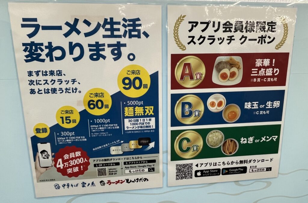 ちなみに雲ノ糸を運営しているのは株式会社もっけだものフードサービス。もっけだものフードサービスは、「中華そば雲ノ糸」と「ラーメンもっけだの(前ラーメン風林火山)」を運営しており、グループで合わせると6店舗ほど展開しているようです。(2026年1月現在)