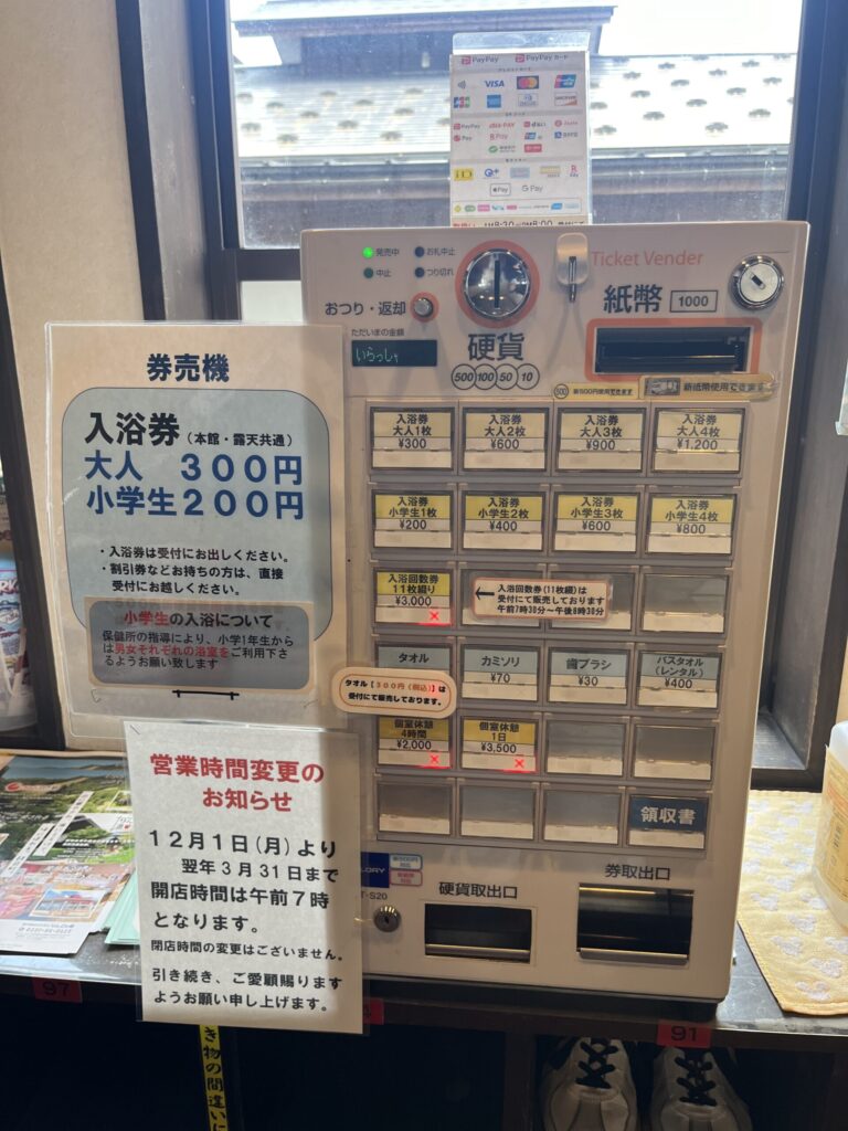 入浴券は入口の券売機で購入するか、受付でも購入できます。