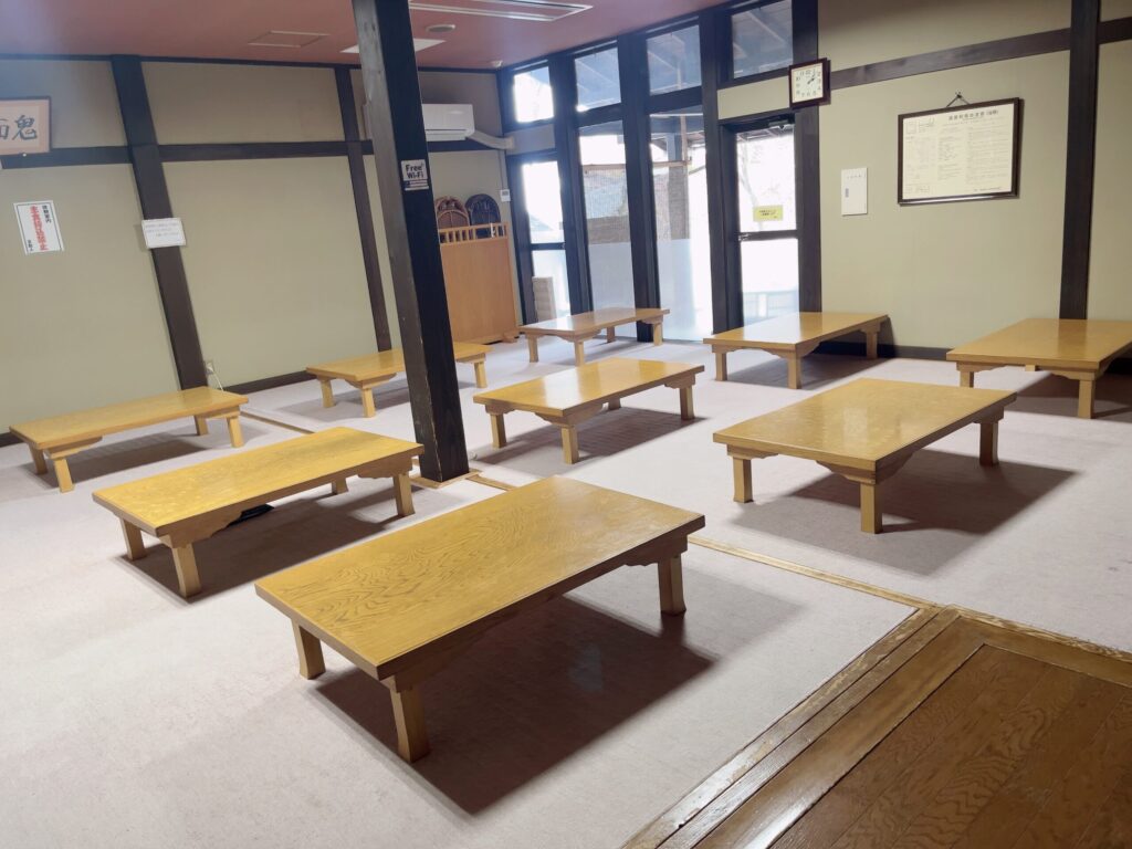 テーブルが9つ、座布団を敷いて休めます◎40人程度は軽々入れそうな大きめの造りです!
