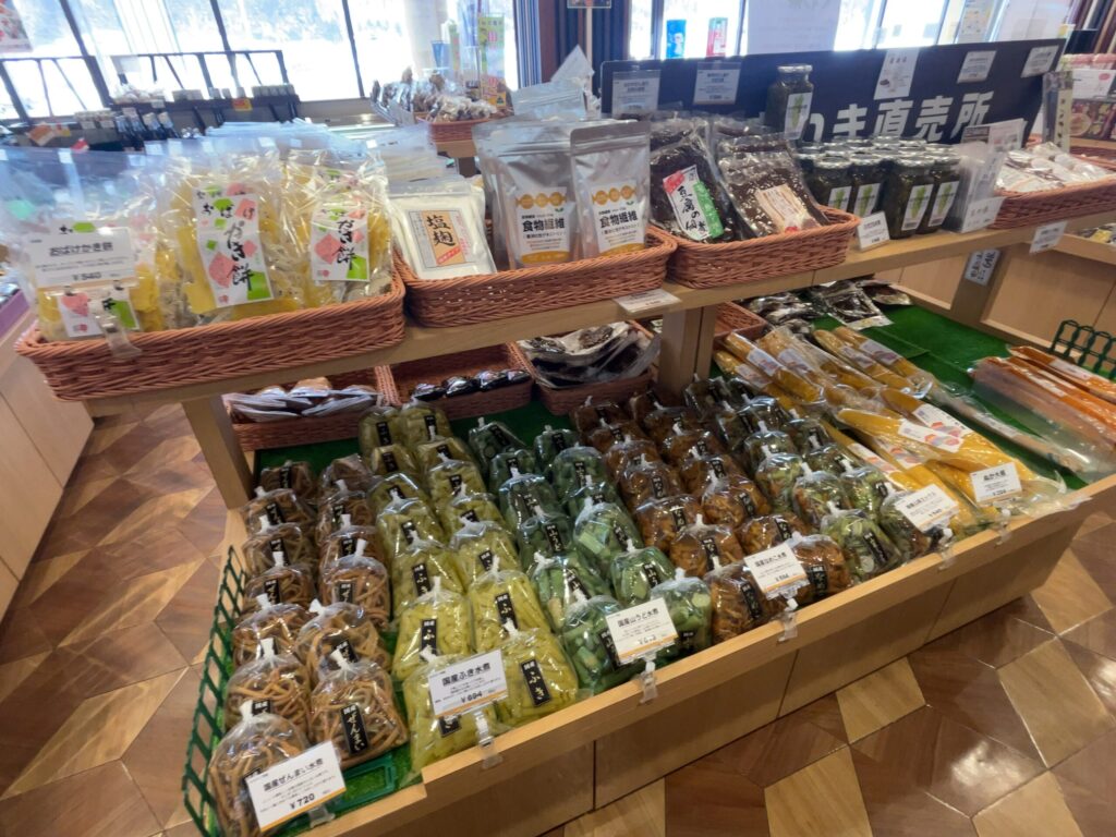 売店・直売所は、西川町らしいものが多めの印象◎冬の時期は山菜が豊富でした!