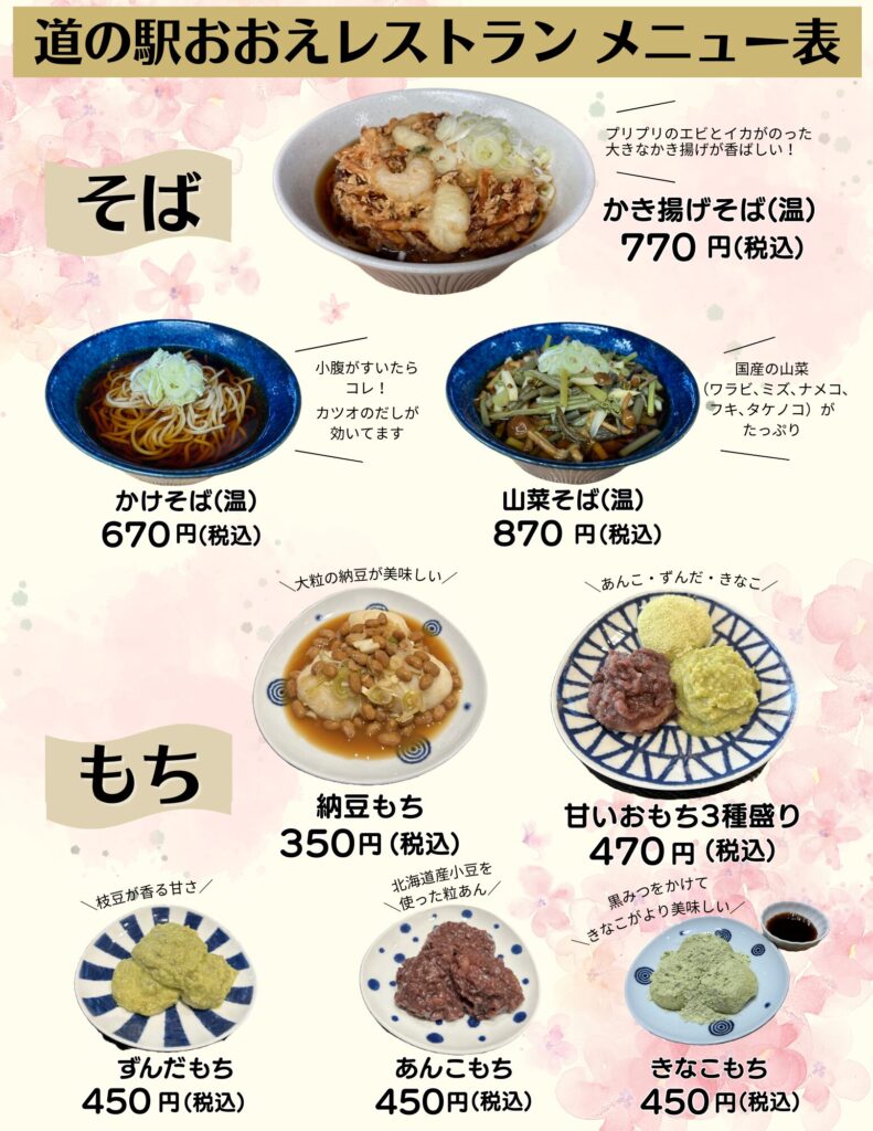 そんな道の駅おおえコラマガセのレストランメニューはこちら↓