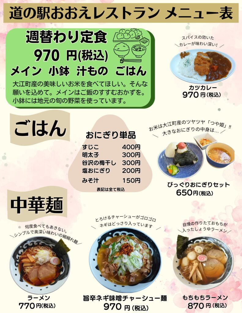【大江町】「道の駅おおえコラマガセ」のレストランメニュー